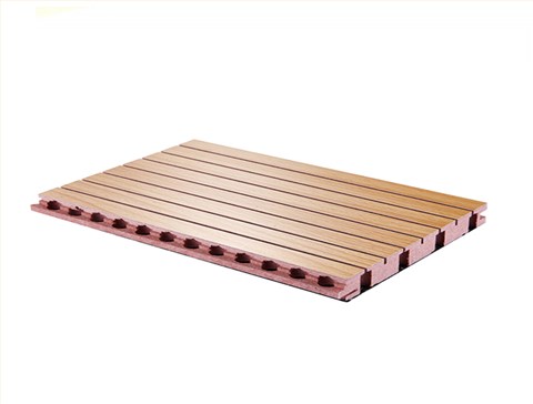 槽木吸音板是表面开槽,背面穿孔的吸音板。背面用不燃吸音黑纸覆盖,有效防止内部吸音材料裸露。槽木吸音板的规格型号非常丰富,可根据不同的内装风格和整体效果选用不同的型号规格满足要求。这类型的吸音板可以大规模应用在礼堂、会议室、多功能厅、机场等空间。 |